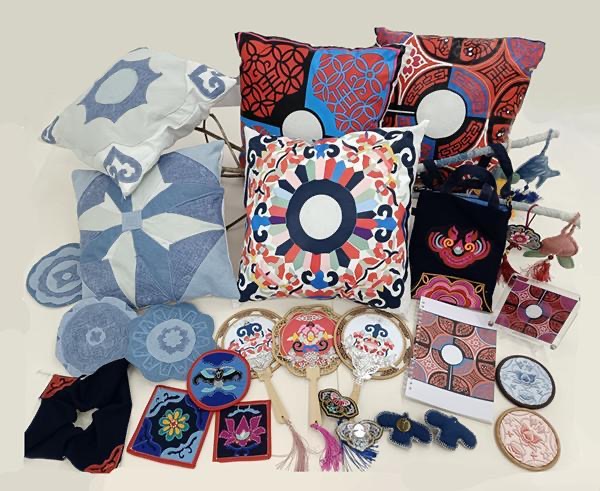 调研后,实践队以客家服饰经典纹样、蓝衫色彩及绲边工艺线条为素材,开展客家服饰文创产品设计与制作,让古老客家服饰文化以更轻盈、更贴近日常的形式焕发生机。此批客家服饰文创产品共56件,每件都是文创精品,既彰显出浓厚的客家服饰文化韵味,又符合现代家居服饰产品的实用性与审美性。目前该批产品深得长校镇政府的肯定,并按市场价被收购。