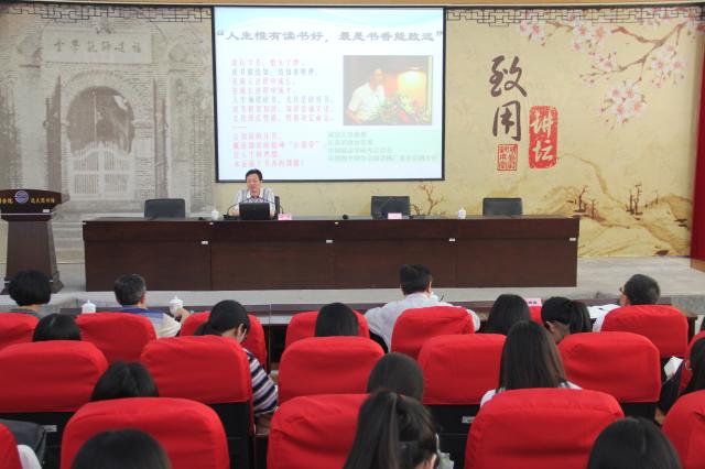 校党委副书记赖锦隆主持报告会,并结合报告主题对师生们提出几点希望:一要积极阅读,在阅读当中感悟人生、乐以忘忧。如习近平总书记寄语所说——“使读书学习成为改造思想、加强修养的重要途径,成为净化灵魂、培养高尚情操的有效手段。要真正把读书当成一种生活态度、一种工作责任、一种精神追求、一种境界要求。”;二要有目标和计划地多读一些经典好书,注重人文养成。切忌急功近利,读书没有捷径,只有勤奋努力,坚持不懈,方可不悔初心、学有所成;三要树立终身学习的理念,抓住一切可读书的机会提升自己,努力传承优秀传统文化,并进行文化创新,在学习型组织建设中发挥正能量,为学校的发展做出更大贡献。