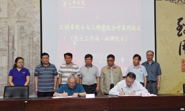 报告会结束后,刘健校长代表我校与王任享院士签订“三明学院院士工作站”建站协议以及“双聘院士”聘任协议,并为王任享院士颁发了双聘院士聘书。王院士听取了刘健校长关于三明市院士、博士创新创业联盟的筹备情况的介绍,非常赞赏三明学院发挥地方高校的智力优势为三明经济社会发展作出的贡献,欣然接受了担任三明市院士、博士创新创业联盟顾问的邀请。据悉,王院士将其受聘期间的技术咨询费用自愿捐赠给三明学院教育发展基金,并从中设立王任享院士奖教奖学基金。